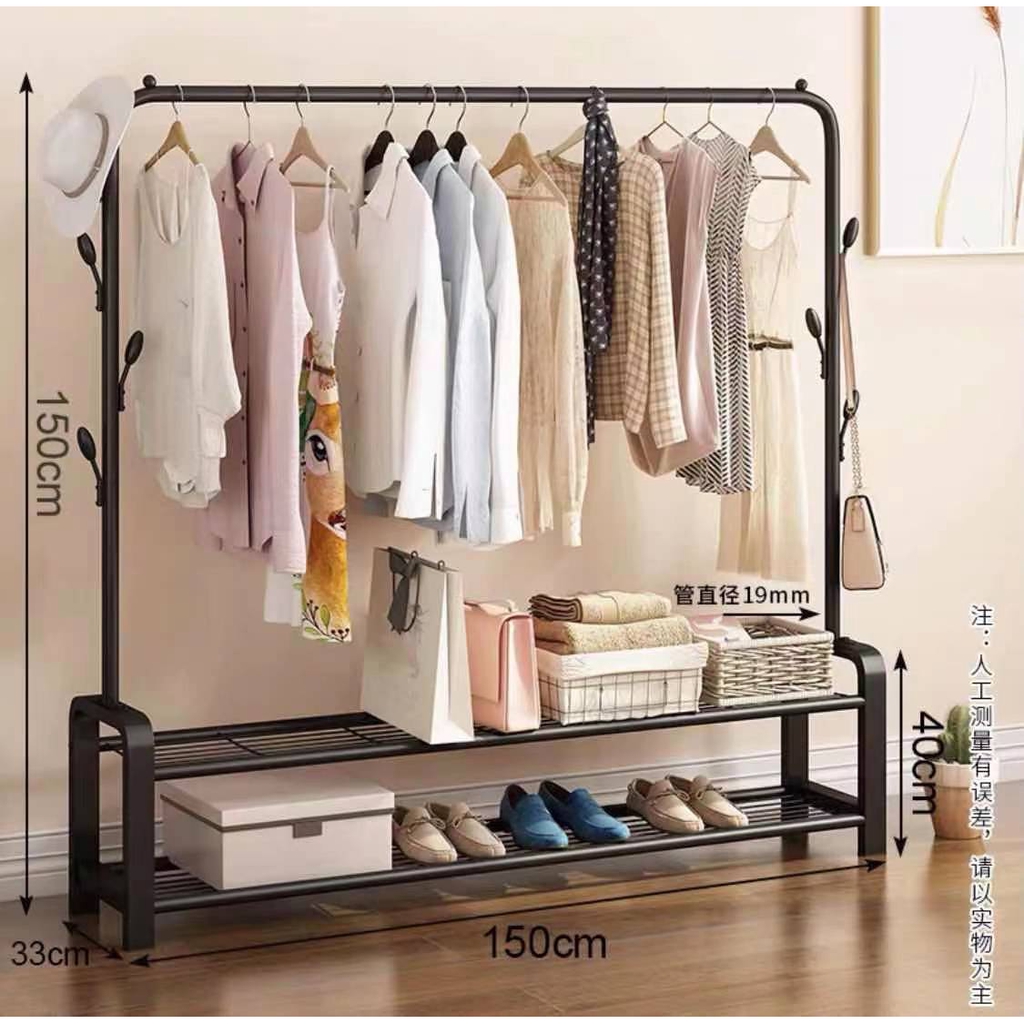 Ppp Clothes Rack Black 150cm 155cm 33cm 2 Layer Iron Stroage Shoe Beg Rack Butik Kedai Baju Drying Rack 224 Shopee Malaysia